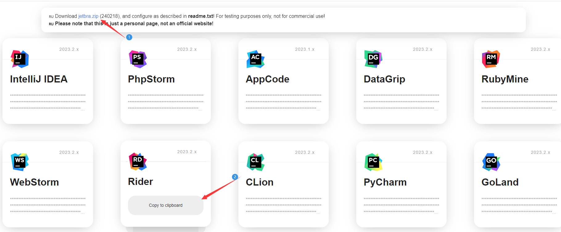 已经失效 1. 打开链接 https://3.jetbra.in/ 2. 随便点击下图中一个可用的链接,进入之后看下一步。