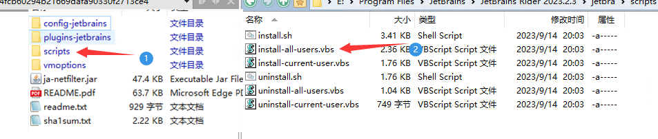 jetbra\scripts\install-all-users.vbs脚本,等待执行完,出现Done 4. 点击Rider图标,复制key