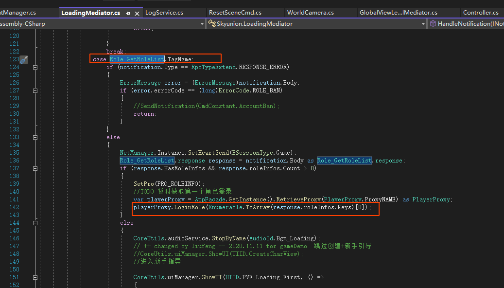 使用第一个角色进行登录,登录角色服