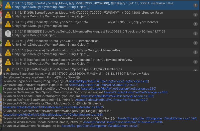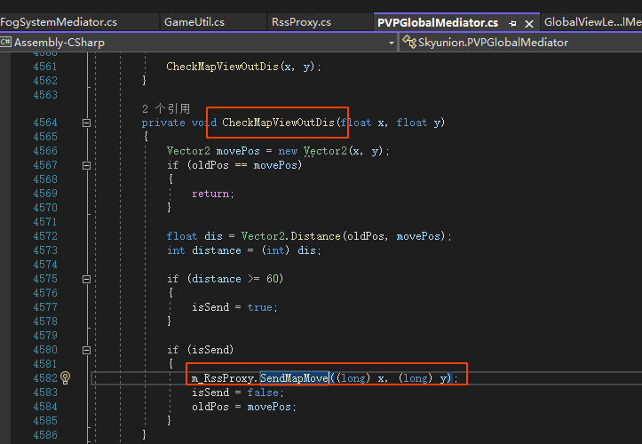 *发送给服务器相机移动的消息public void SendMapMove(long x, long y)*