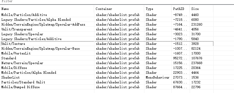 (all_shader.ab内容) 应该是把所以shader打包进去,但是Container 异常