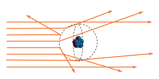 非均匀介质(heterogeneous medium)---散射 当非均匀物质内部的折射率变化斜率很大时(突变),就会发生散射(Scattering)现象,光会被分割为多个方向,但光的总量并不会发生变化: