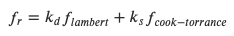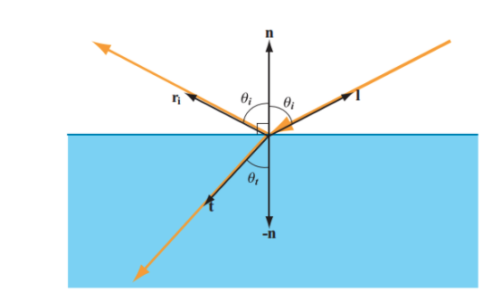 根据上面的能量守恒关系,可以先计算镜面反射部分,此部分等于入射光线被反射的能量所占的百分比。而折射部分可以由镜面反射部分计算得出。