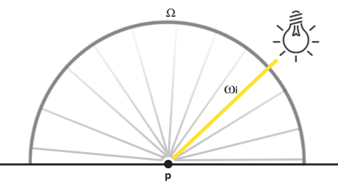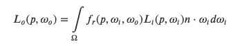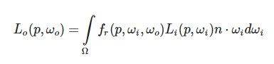 参数说明: - fr ( p , ωi , ω0 ) : 双向反射分布函数(BRDF) - Li ( p , ωi ) : 灯光颜色*灯光强度(