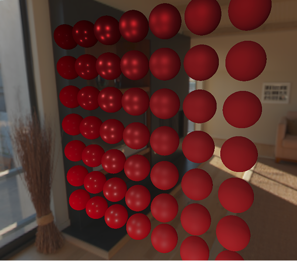 加入了IBL的渲染效果如下(竖向是金属度增加,水平是粗糙度增加):