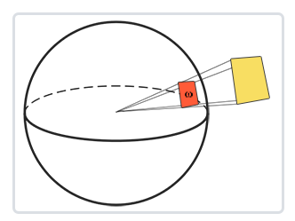 立体角(Solid Angle):立体角用ω表示,它可以为我们描述投射到单位球体上的一个截面的大小或者面积。投射到这个单位球体上的截面的面积就被称为立体角(Solid Angle),你可以把立体角想象成为一个带有体积的方向: