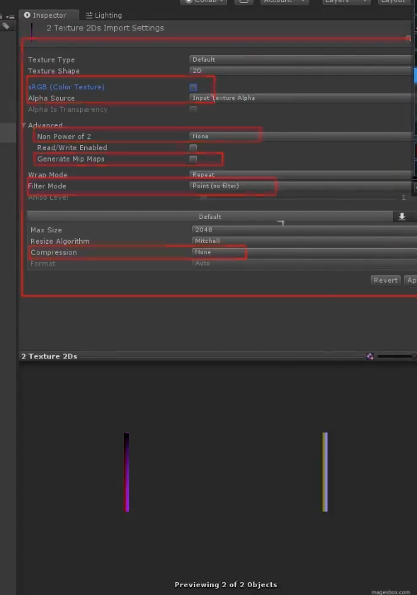 sRGB (Color Texture) 启用此属性可指定将纹理存储在伽马空间中。对于非 HDR 颜色纹理(例如反照率和镜面反射颜色),应始终选中此复选框。如果纹理存储了有特定含义的信息,并且您需要着色器中的确切值(例如,平滑度或金属度),请禁用此属性。默认情况下会启用此属性。
