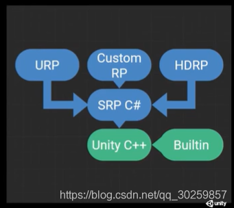SRP全称为Scriptable Render Pipeline(可编程渲染管线/脚本化渲染管线),是Unity提供的新渲染系统,可以在Unity通过C#脚本调用一系列API配置和执行渲染命令的方式来实现渲染流程,SRP将这些命令传递给Unity底层图形体系结构,然后再将指令发送给图形API。