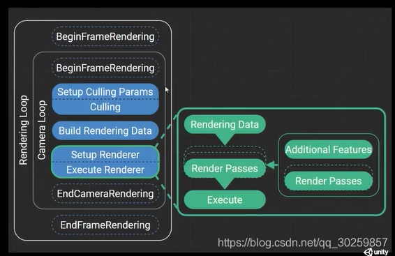 ConfigureCameraColorTarget(activeColorRenderTargetId);AddRenderPasses(ref renderingData); // rendererFeatures AddRenderPassesCreateCameraRenderTarget(context, ref cameraTargetDescriptor, createColorTexture, createDepthTexture); // CameraRenderType.BaseEnqueuePass(m_MainLightShadowCasterPass);EnqueuePass(m_AdditionalLightsShadowCasterPass);EnqueuePass(m_DepthNormalPrepass);或者EnqueuePass(m_DepthPrepass);EnqueuePass(m_ColorGradingLutPass);EnqueuePass(m_RenderOpaqueForwardPass);EnqueuePass(m_DrawSkyboxPass);EnqueuePass(m_CopyDepthPass);EnqueuePass(m_CopyColorPass);EnqueuePass(m_TransparentSettingsPass);EnqueuePass(m_RenderTransparentForwardPass);EnqueuePass(m_OnRenderObjectCallbackPass);EnqueuePass(m_PostProcessPass);EnqueuePass(m_FinalPostProcessPass);EnqueuePass(m_CapturePass);EnqueuePass(m_FinalBlitPass);EnqueuePass(m_PostProcessPass);