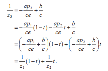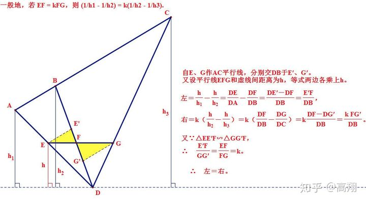 通过几何推导得出结论:假设EF=k*FG;则得出(1/h1 - 1/h2) = k( 1/h2 - 1/h3 );(可以将h理解为z,这里只是表面h的倒数呈现线性关系)