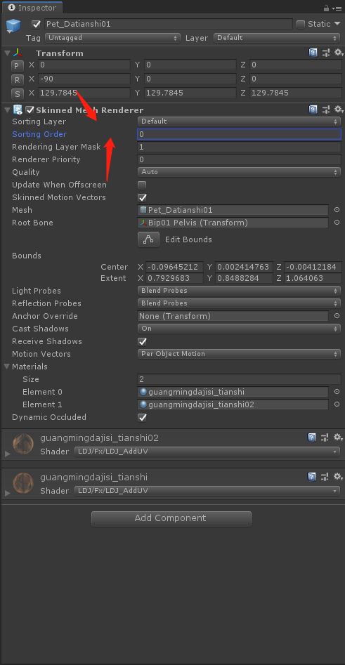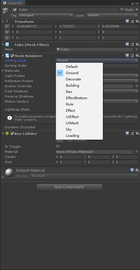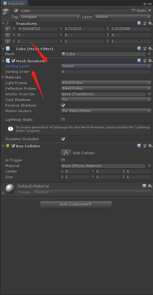 MeshRenderer在Inspector设置SorttingLayerName和SorttingOrder¶